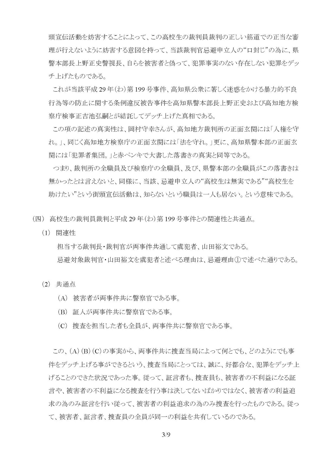 2017年9月20日今後の公判に支障をきたすことが予想されるため、反論書の掲載をやめ、裁判官忌避申立書に差し替え。ueuchiは浄書のみ。